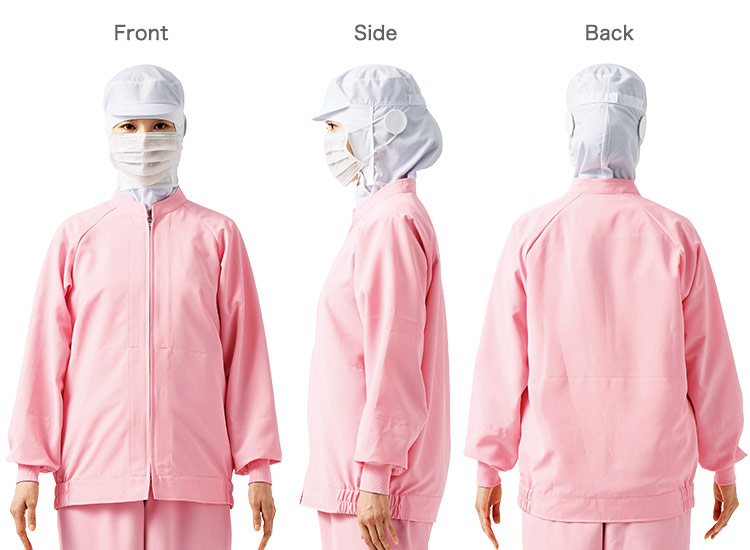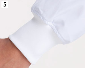 袖口にはやわらかフライスを使用して、異物混入を防止します。長時間着用しても快適です。