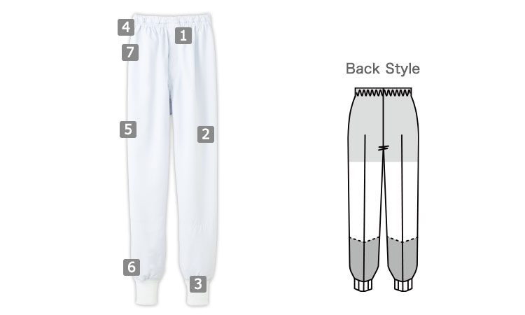 - フロント…コイルファスナー、ウエスト…総ゴム、縫製仕様…巻き伏せ、本体袖口…フライス、防透裏地…肌色メッシュ、インナー袖口…メッシュ&ゴム入り、スピンドル入、ウエストゴム取り替え口、右前ウエスト裏マジックテープ式キーポケット付き