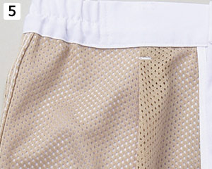 インナーが透けないように裏地は肌色をセレクト。加えて、通気性の良いメッシュ素材を採用しています。
