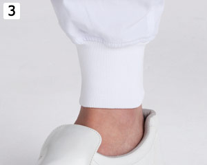 裾口にはやわらかフライスを使用して、異物混入を防止します。長時間着用しても快適です。
