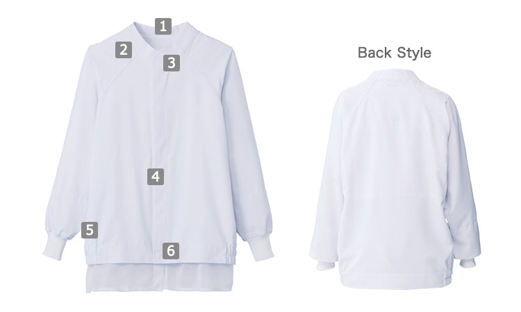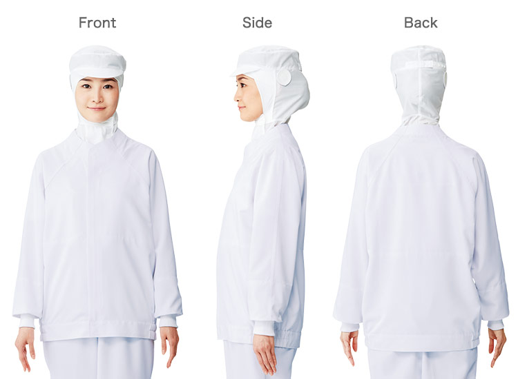 インナーや縫製仕様など異物混入対策だけでなく、背裏の排除や縫製改良など着心地アップにもこだわった1枚です。