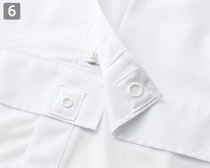比翼仕立ての浮きを防止するスナップボタンが裾部分にあしらわれています。