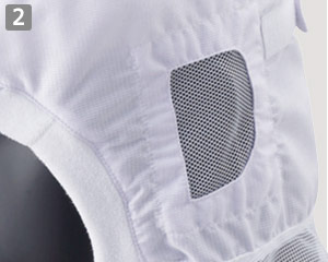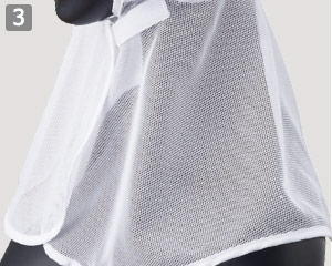 肩にフィットさせつつ、通気性も確保できるメッシュ地の立体ケープです。