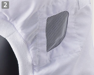 フード着用時でも音声が聞き取りやすく、通気性も確保できるため、内部のムレを防げます。