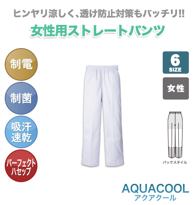 冷感・吸汗・速乾の3つの機能で作業をサポート。 ヒンヤリ涼しく、透け防止対策もしっかりな女性用ストレートパンツ。