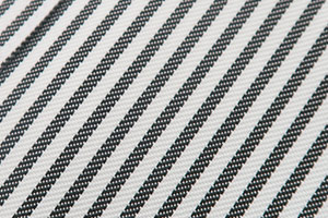 細かいストライプが美しいヒッコリー素材。防脱色加工を施しているため、漂白剤に強く変色を防ぎます。ポリエステル100%でシワになりにくく速乾性に優れています。