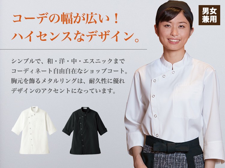 サーヴォの七分袖ショップコート。コーデの幅を自在に広げる、シンプルでハイセンスな一着!SSサイズから対応しているため、女性にもおすすめ!