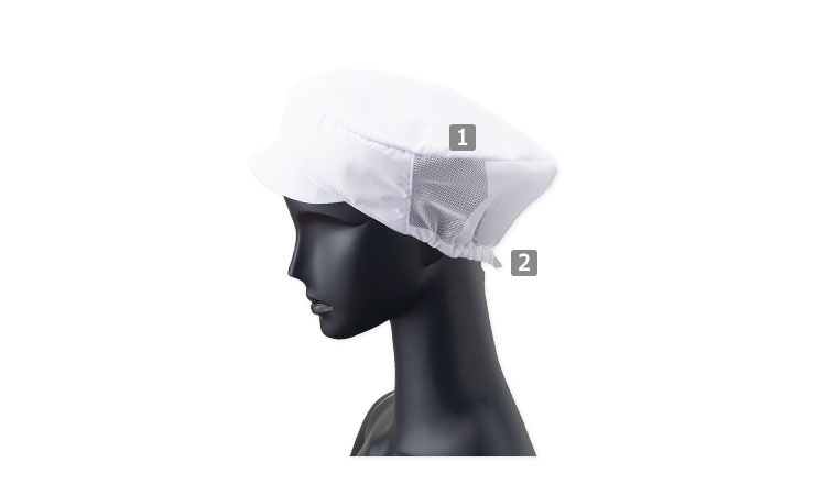 高機能素材「フレッシュエリア」を使用したキャスケット型メッシュ帽子。 細菌の繁殖を強力に抑え、「食」の安全を守ります。 ツバは繰り返しの洗濯にも耐え、変形しにくい繊芯素材、耳部分は通気性・通音性抜群のメッシュ素材を使用。 引き出しゴム仕様でサイズ調整しやすい!