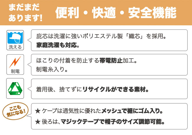 衛生帽子/丸天/メッシュケープ付(33-FH5208)