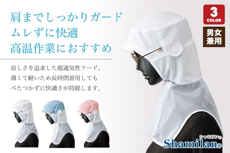 本体には涼感素材のシャミランを使用し、ケープにメッシュ素材を採用することで、通気性と放熱性が高くなり、爽やかな被り心地です。