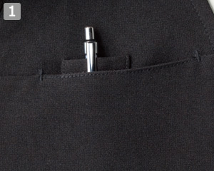 左胸部分には胸ポケットとペン差しポケット付き。サッと出し入れできます。