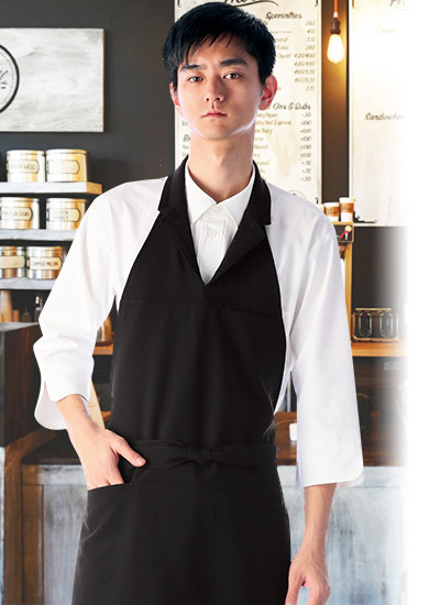 シャツとパンツにこのカマーエプロンを組み合わせるだけで、上品な印象のコーディネートが完成!ベストとエプロンを買う必要がなくなるため、コストダウンにも繋がります。
