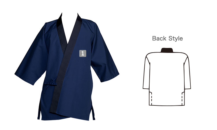 伝統的な和の調理衣としての風情を残しながら、現場で培われた機能性をプラスした汎用性の高い法被。 落ち着きのあるネイビーで職人の品格を引き立てます。左胸に内ポケットつきで物を出し入れしやすく便利!