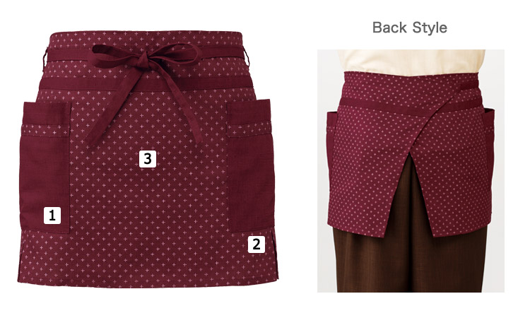 全面に効かせた小振りの十文字柄がエプロンのアクセントになります。