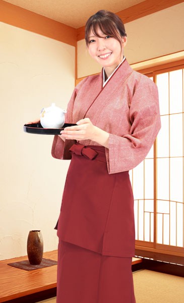 着用写真の感じがとても気に入り、旅館の制服としてどうかと試しにサンプルをお借りしました。 生地にはしっかり厚みがありますが、軽く涼しげで動きやすいゆったりした作りになっています。 そして柄がまたいいですね。鮫小紋というらしいのですが、非常に細かく遠目からでは無地に見えますが、 整然とした模様の下地に和色が敷かれたなんとも奥ゆかしい柄になっていて 着用者に上品さと誠実な印象を与えてくれます。 下に合わせるスカートと前掛けの色合いも茶衣着とぴったりでした。 モデル着用例の商品一式がすぐに購入できるHPの導線もよく考えられているなと感じました。 同じシリーズでパンツもあったので業務合わせて下だけ支給を変えるのもありだなと検討中です。