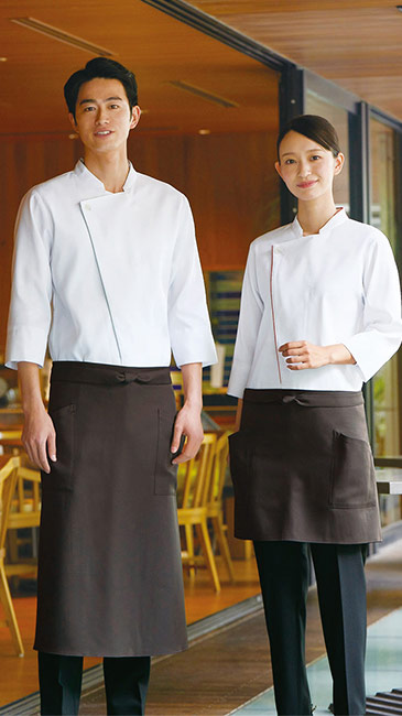 コックコートでは珍しいストレッチ機能付き。長時間の着用でも動きづらさを感じることなくストレスフリーで着ていただけます。