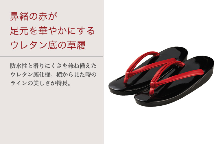 鼻緒の赤が足元を華やかにするウレタン底の草履。