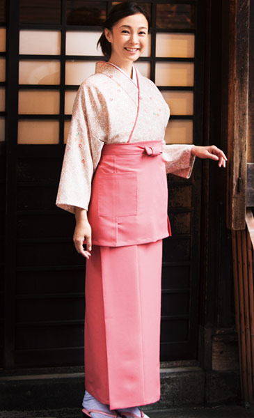 毎日着付けしなくても、きもののような装いができるセパレートタイプの二部式きもの(上衣)。 さっと羽織るだけで簡単に和の装いができるから、忙しい現場でも着替える手間がかかりません。