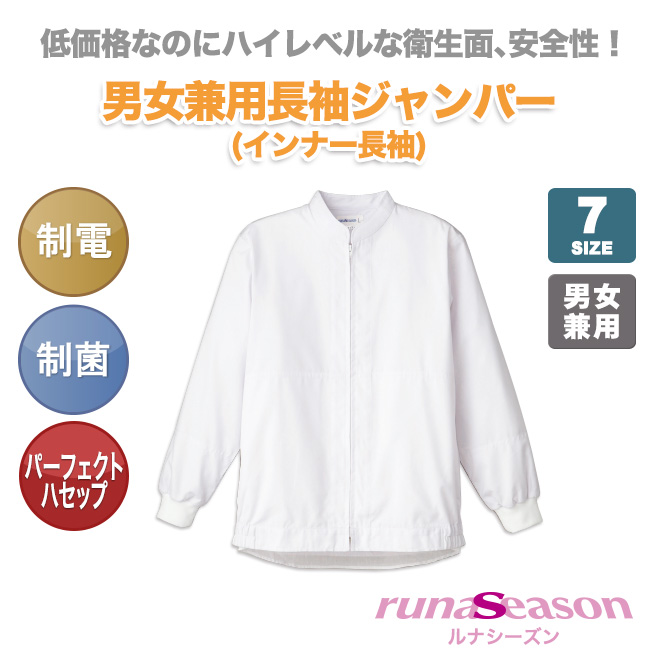異物混入対策仕様でリーズナブル! 衛生面、安全面、コスト面にこだわった男女兼用長袖ジャンパー(インナー長袖タイプ)
