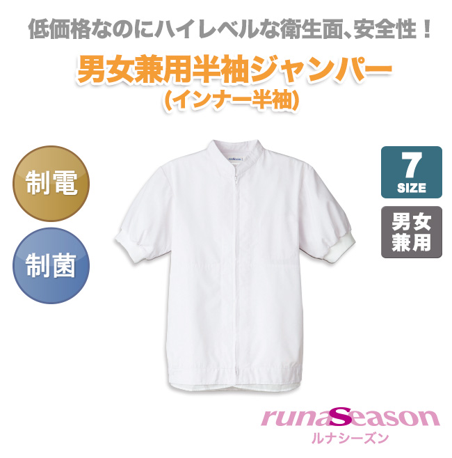 異物混入対策仕様でリーズナブル! 衛生面、安全面、コスト面にこだわった男女兼用半袖ジャンパー。