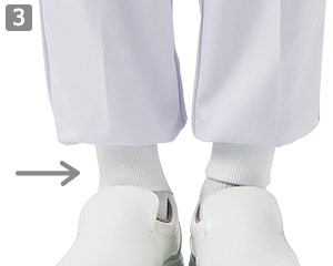 裾口にはやわらかフライスを使用し、しめつけ感軽減で長時間快適に着用可能!異物混入を防止。