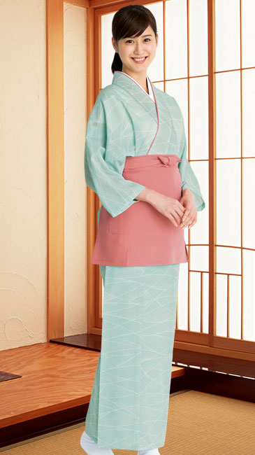 二部式着物、茶衣着は一人で簡単に着られる上、上下の組み合わせも自由にできます。帯や前掛けを組み合わせることでよりお店にあった和の装いが可能です。
