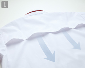 - 五分袖、左胸ポケット、体毛落下防止ネット・ゴム交換用ホール、裾スリット、ベンチレーション