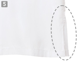 裾脇にはスリットが入っているので、かがみやすくどんな動作もスムーズです。