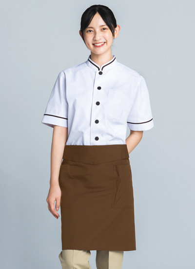 ペンなどを入れられる胸ポケット付きで、スマートなオーダーやメモ取りを可能にします。
