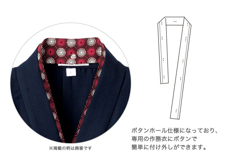 作務衣(34-FJ0704U)専用の替衿。ちりめん素材の和柄が3パターンあり、作務衣に合わせて9通りの着こなしの中からお選びいただけます。※柄の出方は商品により異なります。