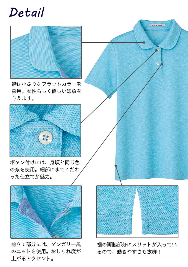 濃淡2色を織り交ぜた糸を使用しているので、まるで綿のような色の深みを楽しめるポロシャツ。 丸みを帯びたフラットカラーがより女性らしい一着。