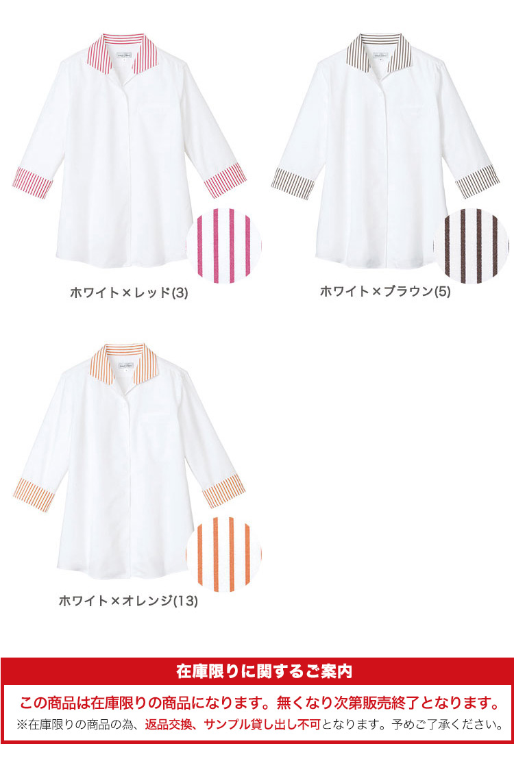 【在庫限り】イタリアンカラー七分袖ブラウス[女性用](34-FB4034L)