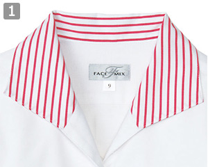 襟元と袖口にあしらわれたピッチ広めのストライプ柄がカジュアルすぎず、おしゃれな印象を与えます。