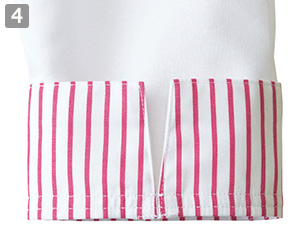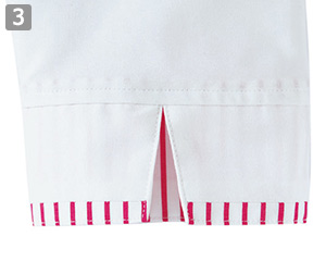 袖口のスリット裏にあるストライプがアクセントとなり、手元を華やかな印象に。