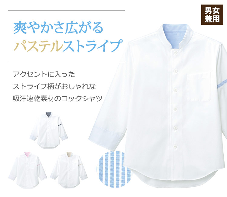 片腕のワンポイントがおしゃれ!無地タイプのコックシャツ。