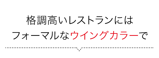 レストランやホテルなど格調高い場所におすすめのメンズオープンカラーシャツ。タイドアップでよりフォーマルに。