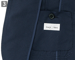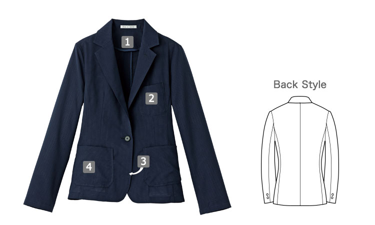 - 背抜き、左胸ポケット、右内側ポケット、両腰ポケット