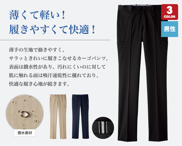 薄めの生地で動きやすく、サラッと快適にはけるカーゴパンツ。