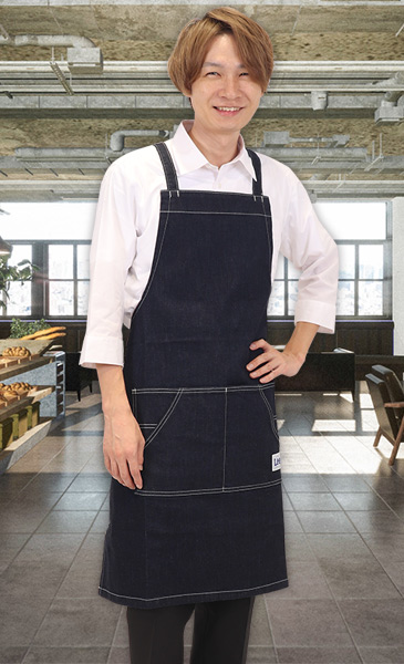 ベーシックなデザインながらも、ダブルポケットが特徴的な胸当てエプロン。ストレッチ性のあるデニム・ヒッコリー・ヘリンボーンと、綿100%のキャンバスの4素材展開。