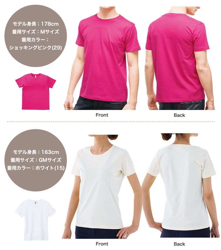- 180g/m2(5.3oz) 天竺(綿100%)※杢グレー(綿85%・レーヨン15%)※チャコールグレー(ポリエステル65%・綿35%)