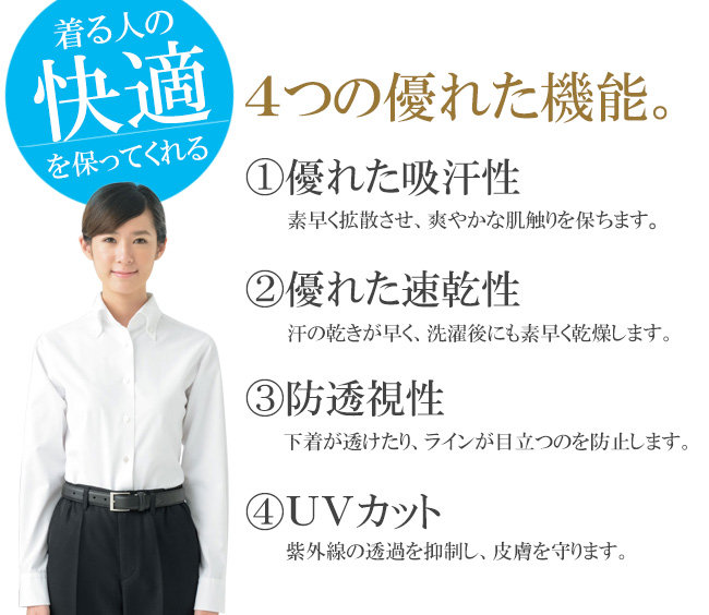 洗濯のしわも残りにくく、アイロンなしで毎日着られて頼もしい一品です。