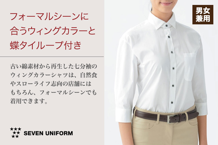 ウイングカラーシャツ/七分袖[男女兼用](35-QH7353)