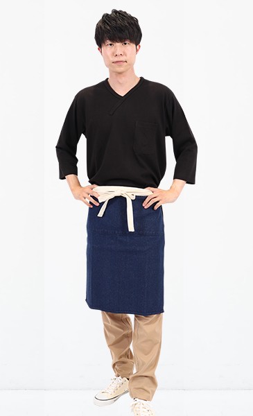 着物や作務衣のような合わせの襟元デザインがポイントのTシャツカットソー。居酒屋さんや和風カフェなどにおすすめです。