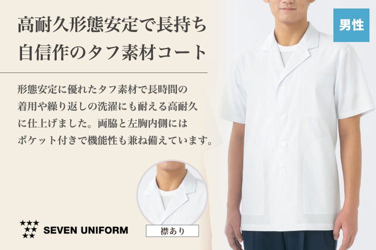 セブンユニフォームの技術が生んだ傑作耐久性形態安定ユニフォーム! 形態安定性に優れたタフ素材を、特殊プレスや耐久縫製でさらに強力に…。長期間の酷使や洗濯にも、折り目やプリーツは美しさをキープ。この驚異の形態安定性と耐久力を、是非ともお仕事にお役立てください!
