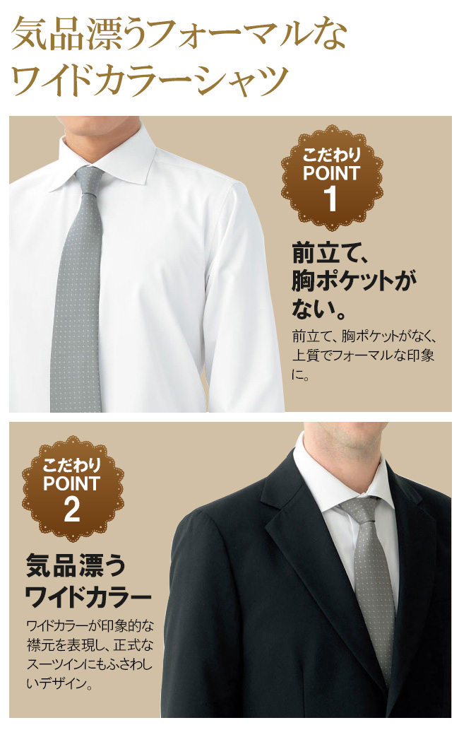 レストランやホテルなど格調高い場所におすすめのフォーマルなワイドカラーシャツ