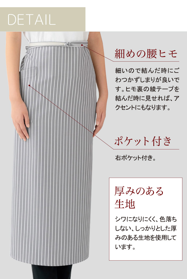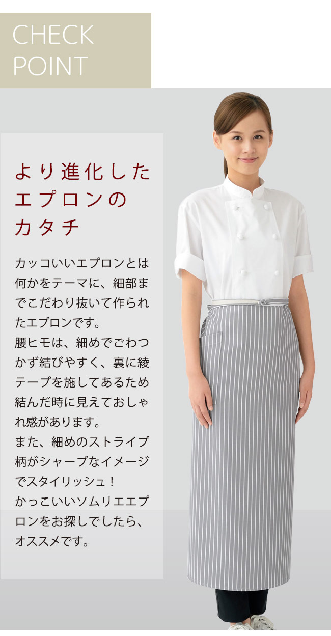 カッコいいエプロンとは何かをテーマに細部までこだわって作られたエプロン。腰ヒモが細くスタイリッシュな仕上がり。