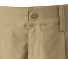 - フロントボタン留め、両脇ポケット、両側ヒップポケット、ワンタック