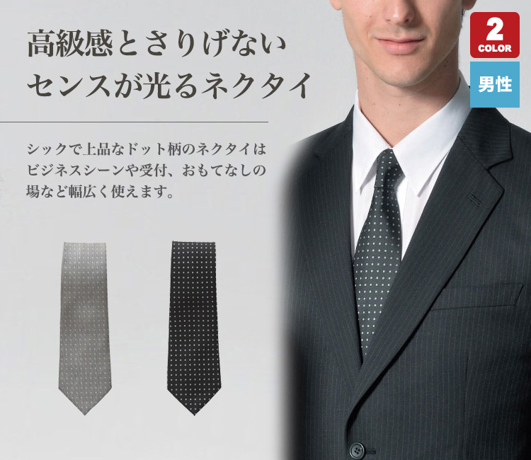 シックで上品なドット柄のセブンユニフォームのネクタイ。ビジネスシーンや受付、おもてなしの場など幅広く使えます。