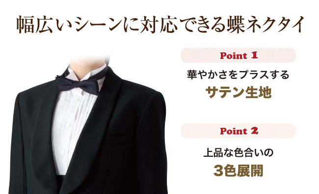スタイリッシュな色合いの3色展開の蝶ネクタイです。