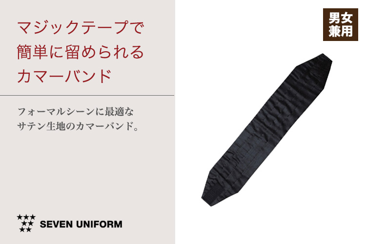 マジックテープ留めのカマーバンド。フォーマルシーンに最適、腰元にプラスワン。
